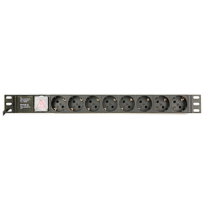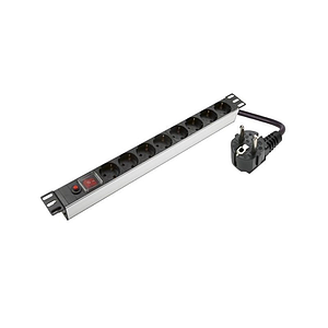PDU, 8 Schuko sockets, 1U, 10A, C14 plug 3m cable, black