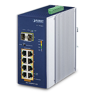Planet industrial 8-port 10/100/1000T 802.3at PoE + 2-port 100/1000X SFP Ethernet switch w/ 12V booster