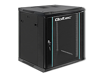 Qoltec 19" wall-mount rack cabinet 12U 600*635*600, with glass door, black