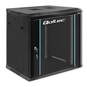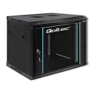 Qoltec 19" wall-mount rack cabinet 9U 600*500*450, with glass door, black