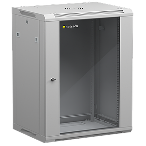 Netrack 19" wall-mount F-Line rack cabinet, 15U 600*450, glass door, gray, flat-pack