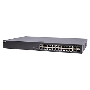 Ruckus ICX 8100 1RU switch, 24×10/100/1000 Mbps PoE+ 802.3at, 30W Class 4 ports, 4×1GbE SFP uplink-ports, 370W PoE budget. Power cord not included