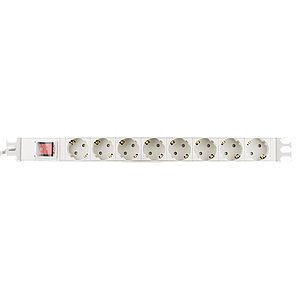 19" 1U toitepaneel, 8*CEE 7/4 Schuko pesa, 1*CEE 7/7 Schuko pistik, 3m, toitelülitiga, valge