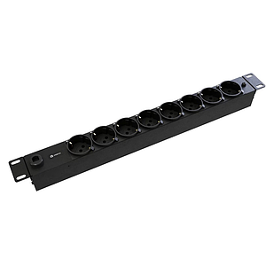 PDU, 8 Schuko sockets, 1U, 10A, C14 plug 3m cable, black