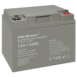 Qoltec AGM battery 12V 45Ah maintenance-free, efficient, LongLife, for UPS, scooter