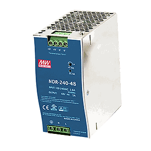 MeanWell 240 W/5.0 A DIN-rail 48 VDC power supply, universal 90 to 264 VAC or 127 to 370 VDC input voltage, -20 to 70°C operating temperature